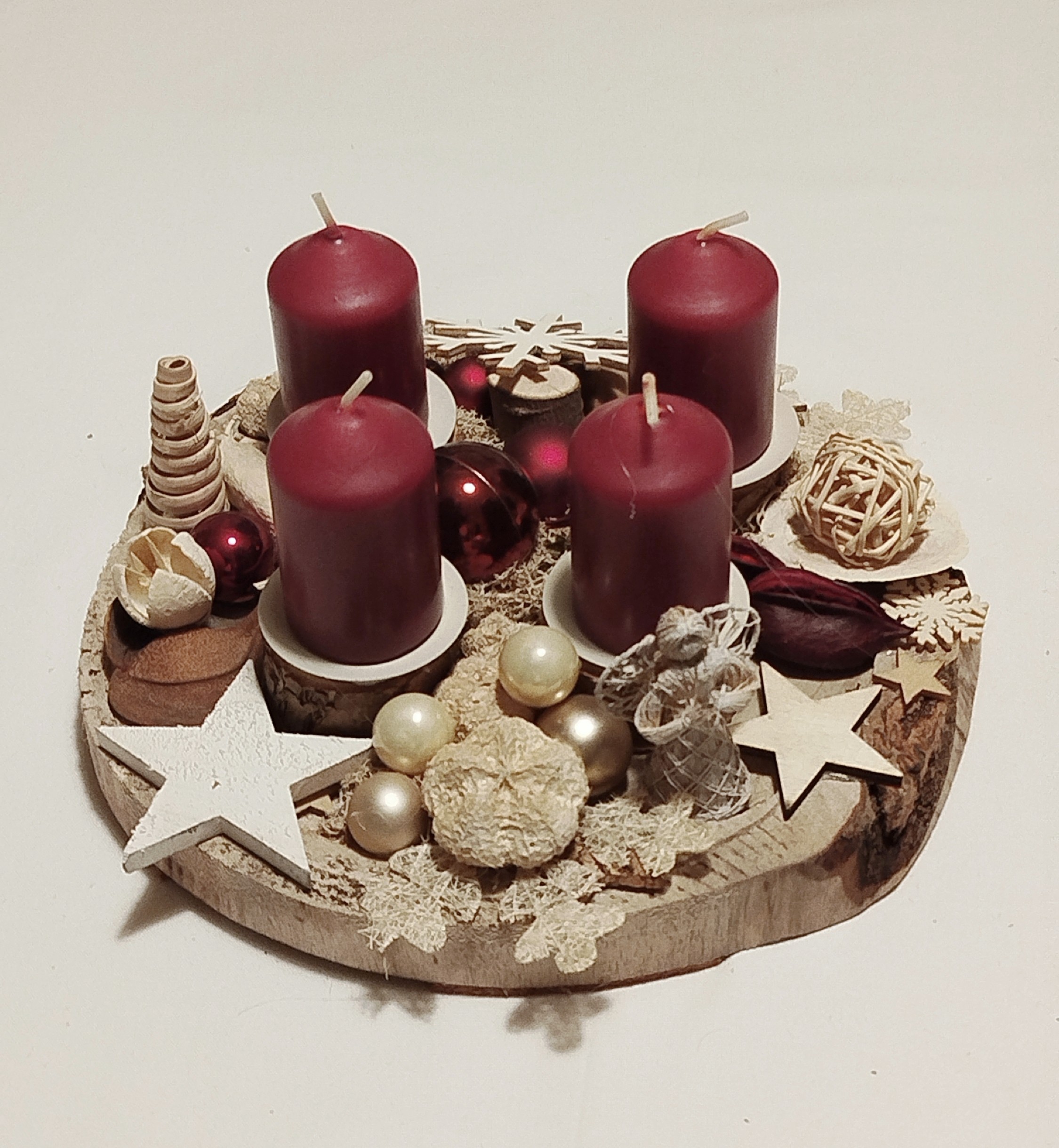 / adventní svícen na dřevě bordó